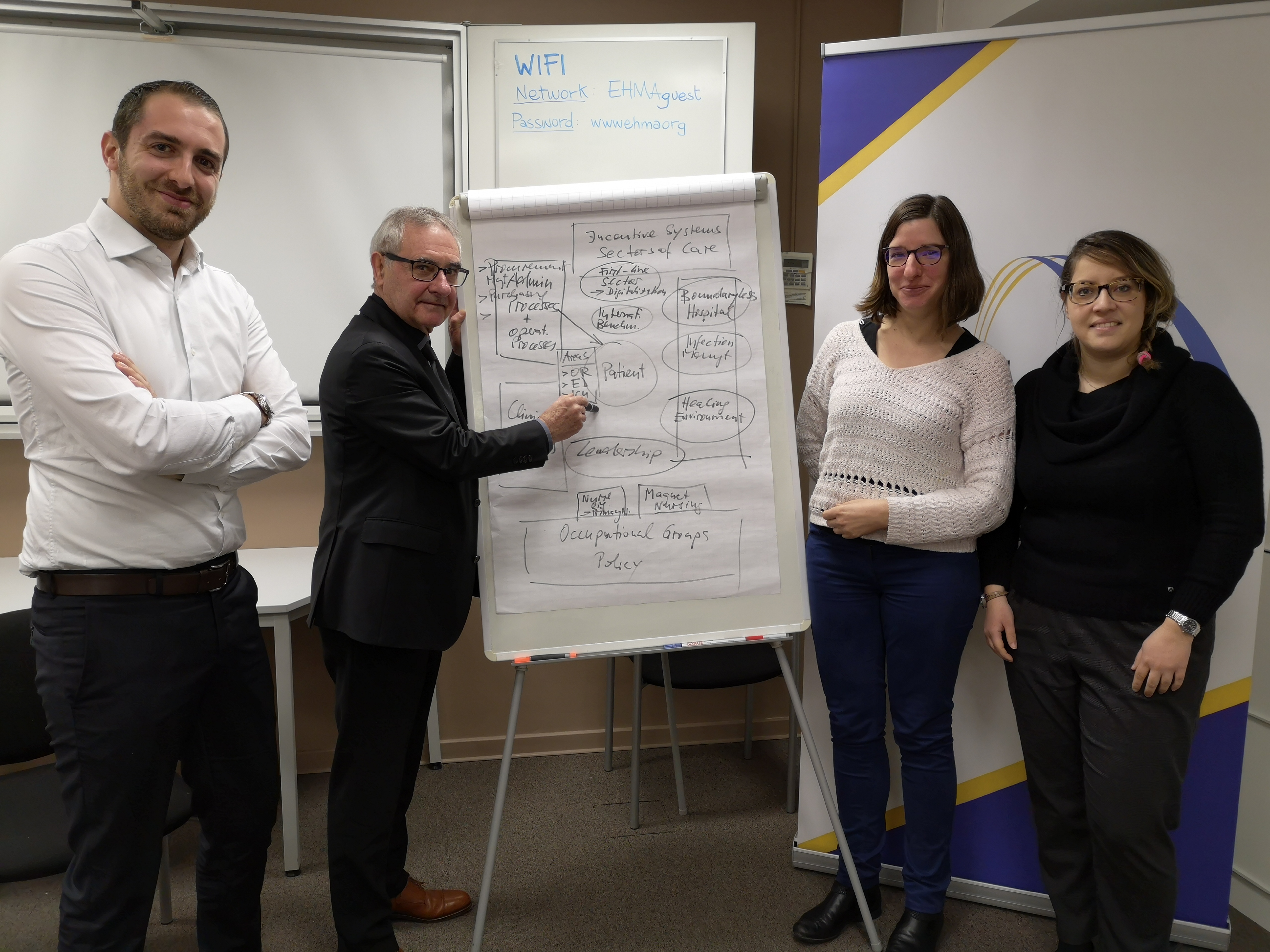 On 29th January 2019, the CKM represented by Professor von Eiff and Ms Susanne Elze visited EHMA in Brussels. Professor von Eiff presented to the EHMA, a range of services of the CKM along with their available forms of support. In addition, organisational and detailed questions about the 35th EHMA Annual Conference (17th – 19th June 2019, Espoo, Finland) were discussed. During the Annual Conference a session about infection management will take place. This session will lead the CKM within the “Health-i-care” project, and has already been initiated by Ms Elze during her 3-month project work at the EHMA in 2018.